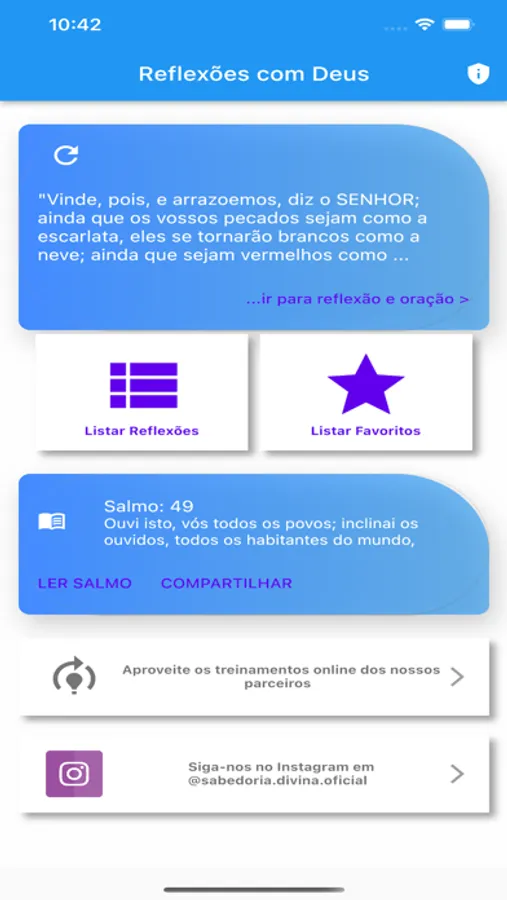 Um aplicativo que reune mensagens sem a necessidade de conexão com a internet onde para cada versículo você tem uma reflexão e uma oração