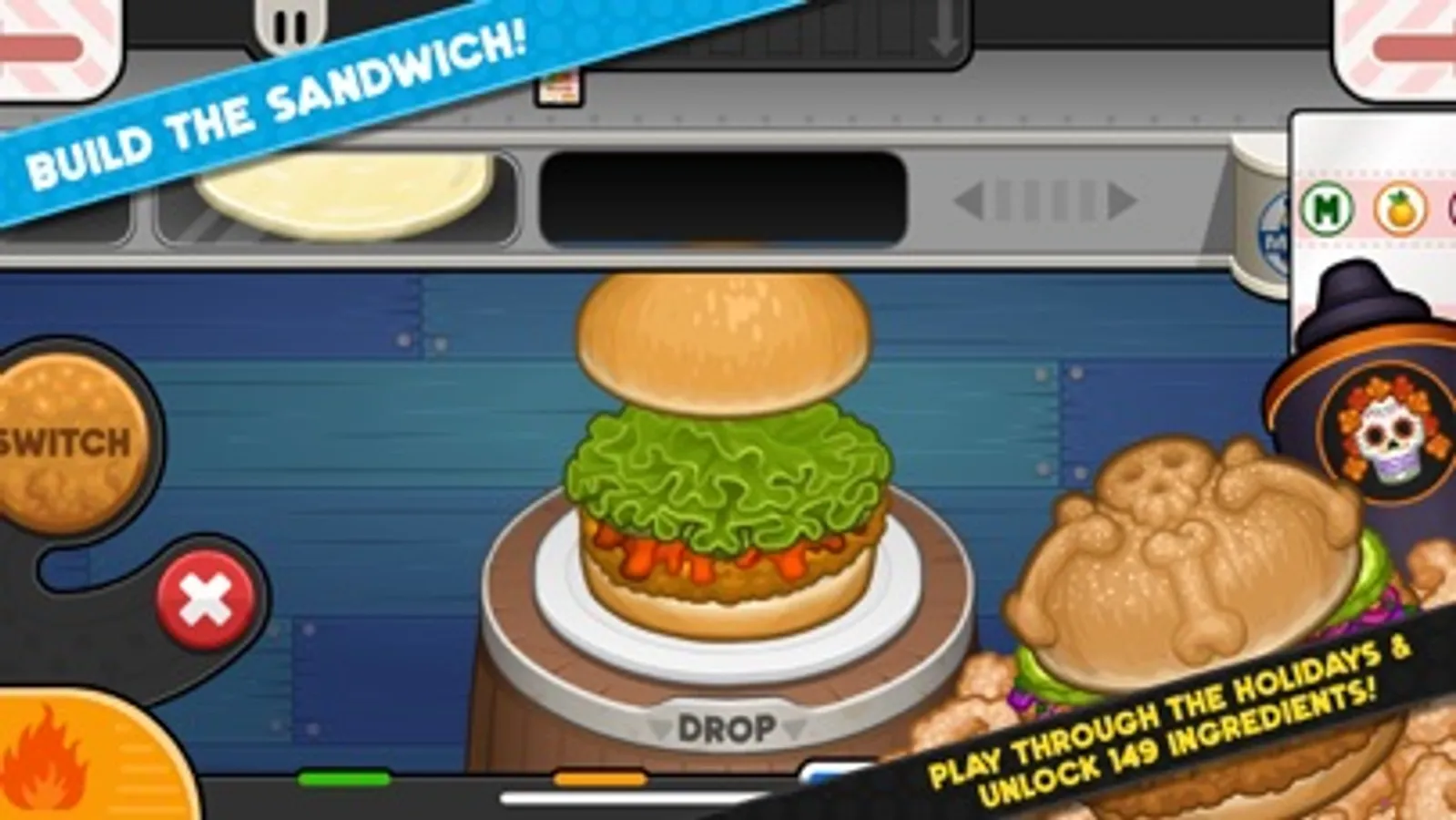 The Chicken Sandwich Wars have begun! When Papa Louie opens the first chicken sandwich restaurant in Oilseed Springs, rival chefs suddenly appear in town to give Papa Louie some competition! You'll be in charge of running Papa's Cluckeria, where you'll bread, batter, and fry foods to craft a variety of different sandwiches. Pile the sandwiches high with toppings and sauces, and create refreshing swirled slushes to serve your picky customers. Work your way through the holidays as you serve seasonal sandwiches and slushes, unlock new ingredients, and earn Daily Specials with delicious sandwich recipes -- and try to outlast your competition!