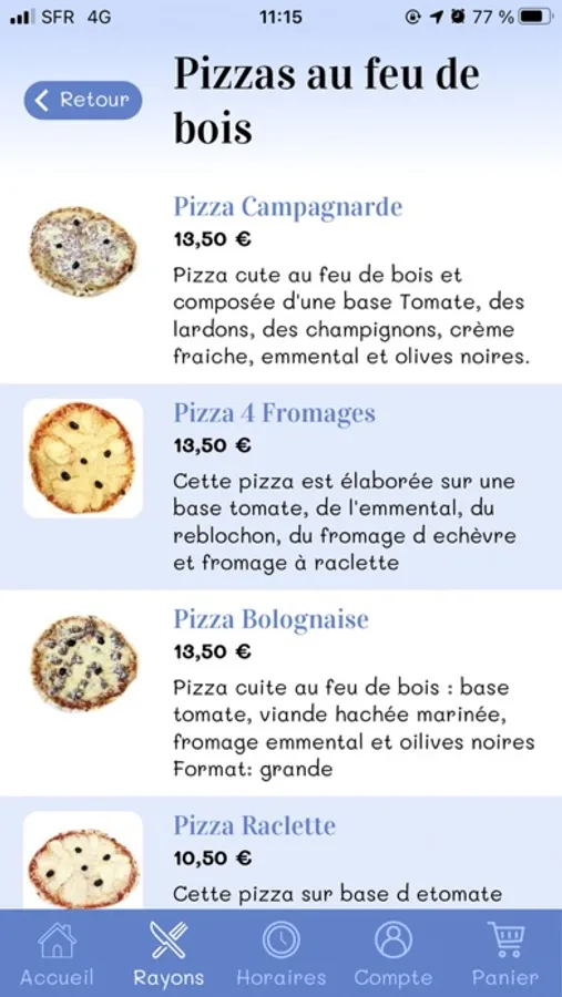 L'application mobile du restaurant permet aux clients de commander en ligne pour de la "Vente à emporter - Click and collect".