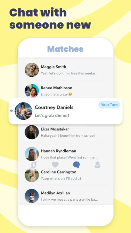 Once you’re out of messages with a match, the chat will lock. We are serious when we say we want you to actually meet in-person. Summer is for dating, not pen pals!