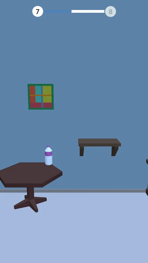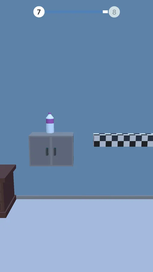 As you start the game, you will face different objects that the bottle can land on. It can be chairs, sofas, subwoofers, or shelves. Click on the bottle so that it can jump or double jump all the way up on a table or any object that is close to it. Make sure it does not fall so that you will reach the finish line fast.