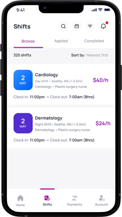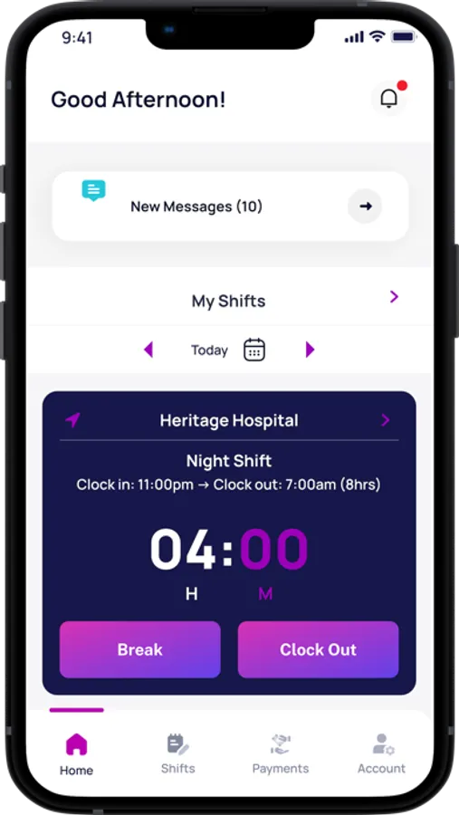 Instant pay! Book shifts, get paid instantly when you clock out, at no cost!