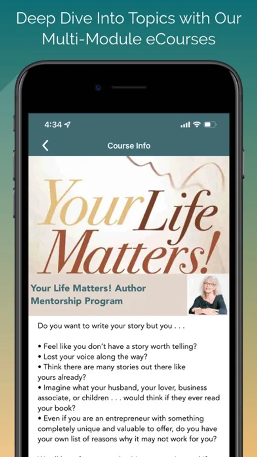 *A library of courses, including my Signature Programs: Author Mentorship, Re-Write Your Life, and Madness, Masks, and Miracles (both the program and my award-winning play to dispel myths and stigmas about mental illness).