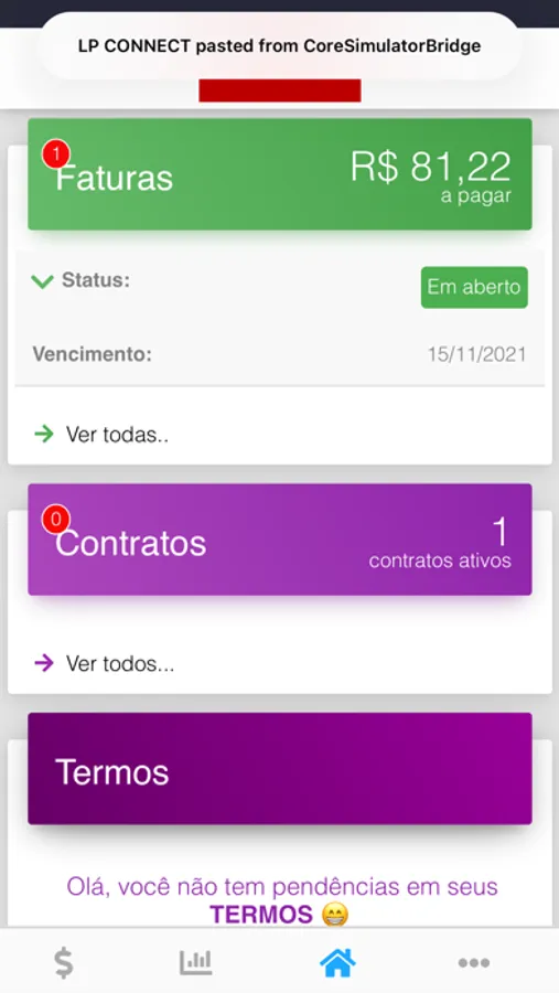 Tenha acesso à segunda via do seu boleto para pagamento, ativação do desbloqueio de confiança, consumo mensal, status de rede e demais informações referentes ao seu contrato com a LP CONNECT de forma rápida, prática, simples e segura.