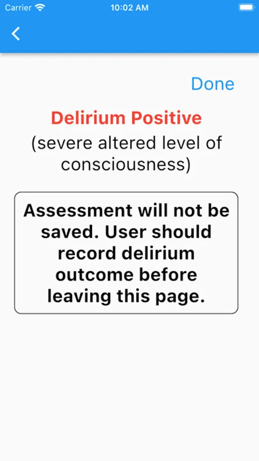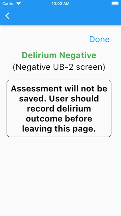 The Ultra-Brief CAM (UB-CAM) is a two-step protocol that combines UB-2 items (Fick et. al., 2015;2018) and 3D-CAM (Marcantonio, et. al., 2014) items to identify the presence of delirium. Delirium is an acute, reversible confusion that is preventable and treatable. Delirium occurs in more than 25% of hospitalized older adults. Early recognition, evaluation and treatment is key to preventing complications and improving outcomes. This App is designed to be an initial screen for delirium and is not a medical diagnosis. Please see a doctor’s advice before making any medical or health care decisions. See "Comparative Implementation of a Brief App-directed Delirium Identification Protocol by Hospitalists, Nurses, and Nursing Assistants," Ann Intern Med. 2022 Jan; 175(1): 65–73 (https://www.ncbi.nlm.nih.gov/pmc/articles/PMC8938856/) and "A mobile app for delirium screening," JAMIA Open. 2021 Apr; 4(2): ooab027 (https://www.ncbi.nlm.nih.gov/pmc/articles/PMC8446432/).