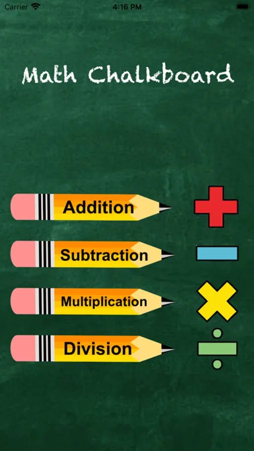 Math Chalkboard is a fun and educational way to learn the four basic math operations. The questions are random, so you can play the same level over and over again to master your skills. Enjoy!