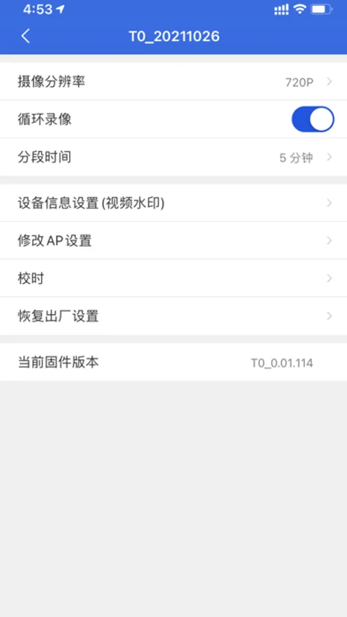 4、设置参数:通过APP设置记录仪设备的部分参数,如录像分辨率等;