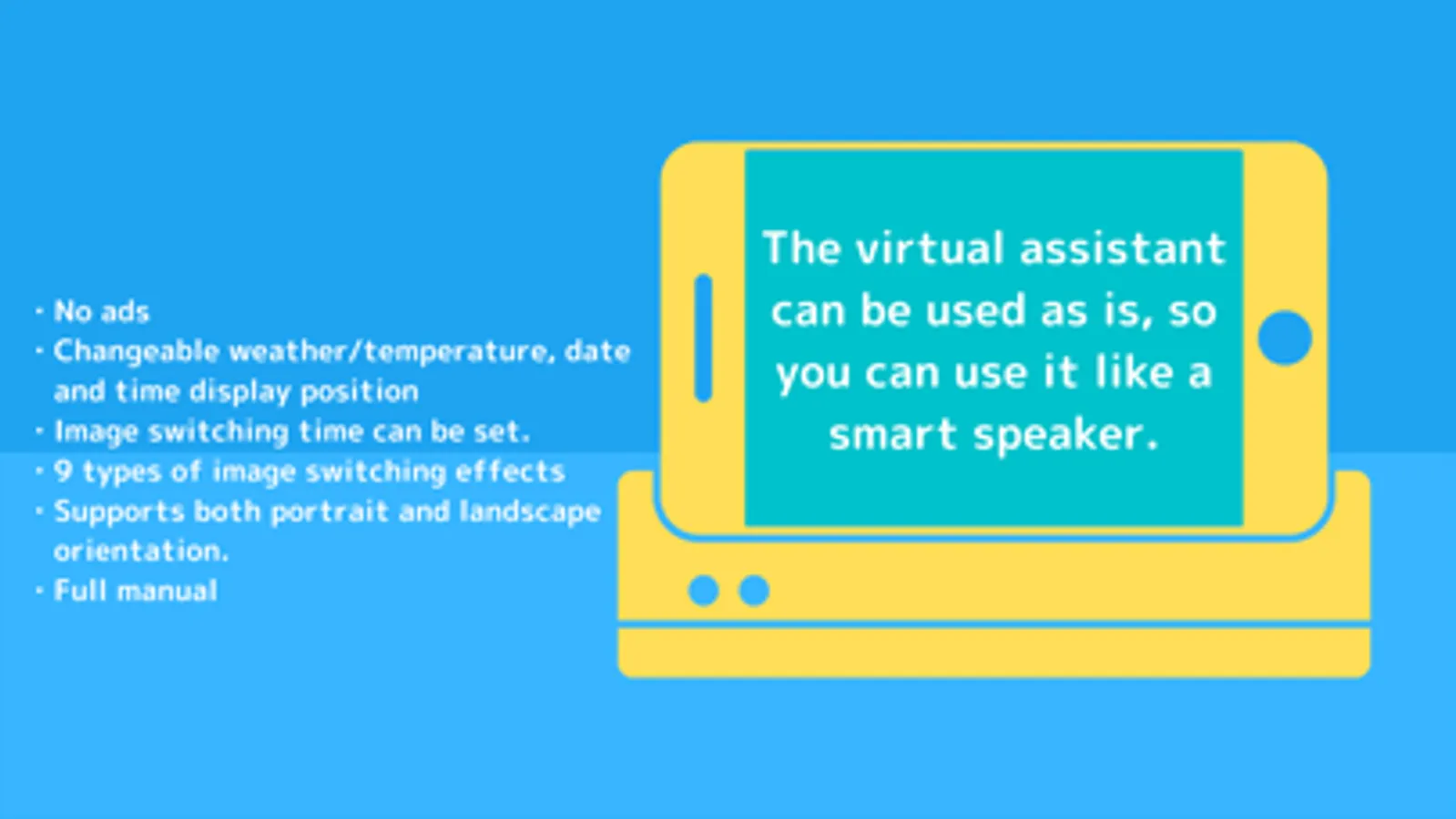 Pictia is a digital photo frame app. Pictia is a digital photo frame app that allows you to reuse your old smartphone or tablet and play a slideshow on it. You can also use it like a smart speaker because you can use the virtual assistant as it is.