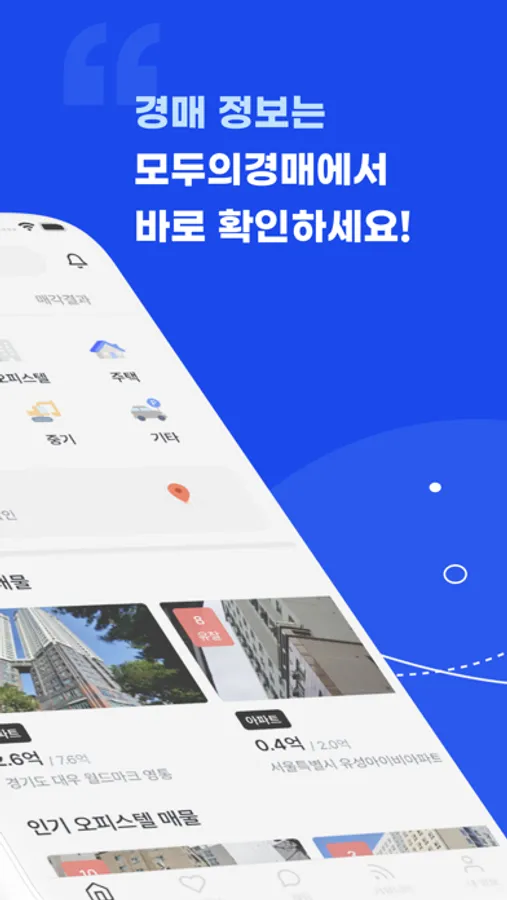 모두의경매는 완전 무료 법원경매 정보 앱으로 누구나 쉽게 무료로 법원경매정보를 찾아볼 수 있습니다.