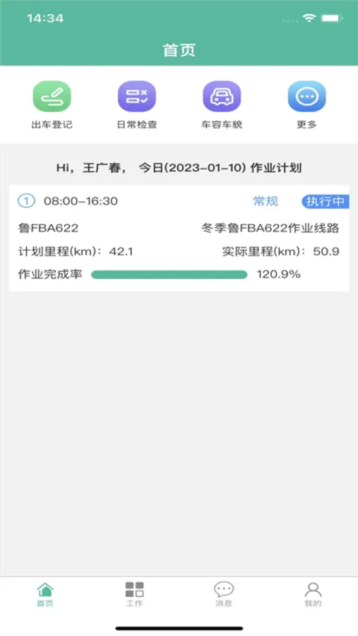 司机通过本应用,能及时知晓自己每天的作业任务,掌握自己的考勤和每月,了解自己的违规驾驶和违规作业情况;此外,本应用提供了一系列工具,可让司机进行一系列事务上报,比如车辆检查、事故上报、站点标记、道路救援、问题反馈等。