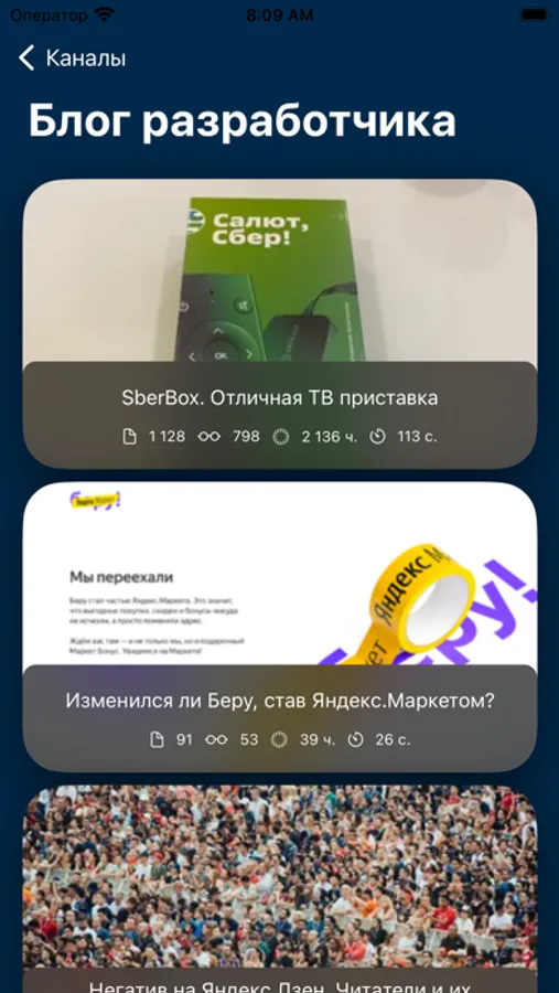 В статистике публикаций отображается общее число просмотров, дочитываний, общее время взаимодействия с публикацией, среднее время дочитывания и количество комментариев.