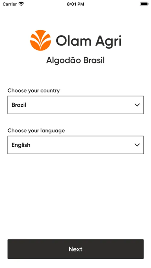 “Olam Direct: Algodão Brasil | Barter app” is available in english and portuguese versions.