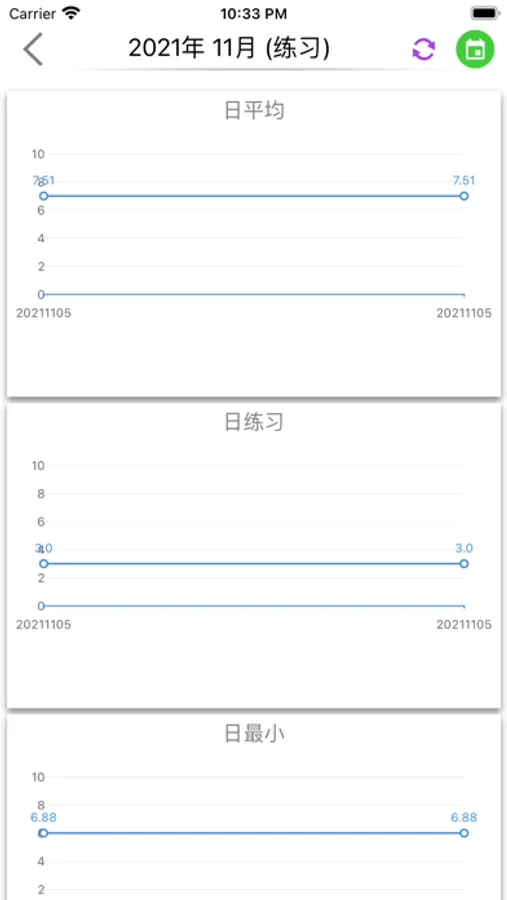 d.成绩包括每次,每日,除了大家都重视的最小值之外,加入了平均值,可在月表中看见是否有成绩的提升。