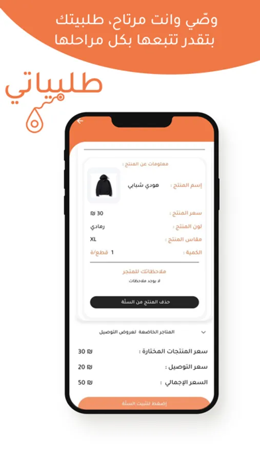 تطبيق طلبياتي هو تطبيق جديد في فلسطين ، يساهم تطبيق طلبياتي في التسهيل على الزبائن في البحث عن المنتجات و الوجبات وشرائها كما يتيح للمتاجر والمطاعم عرض منتجاتها .
