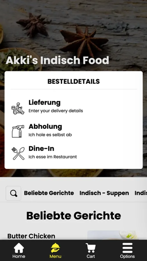 Mit der Akki's Indisch Food Corner Mobile App können leckeres Gericht bequem von zu Hause aus genießen. Stöbern Sie in unserer Speisekarte, wählen Sie die Gerichte aus, die Ihnen schmecken, und geben Sie Ihre Bestellung in Sekundenschnelle auf.