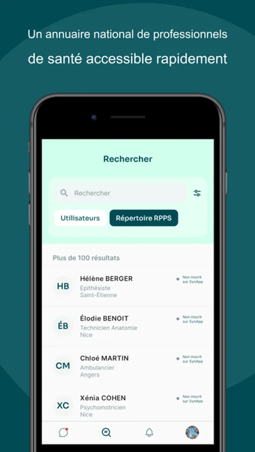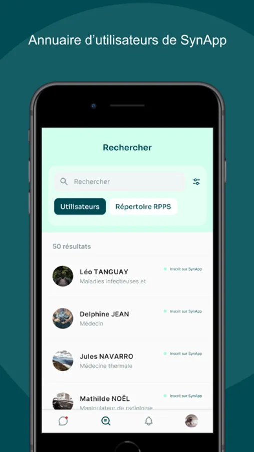 Les utilisateurs sont vérifiés pour s'assurer qu'uniquement les professionnels de santé peuvent s'inscrire. Vous pouvez chercher vos confrères/consœurs via l'annuaire nationale (en France pour l'instant) et tirer profit de la puissance du réseau.