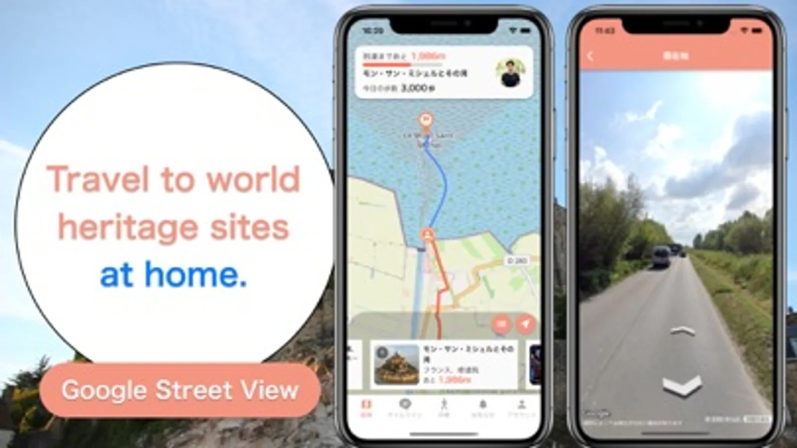 A total of more than 100 World Heritage sites in Asia, Europe, South America, Africa, Oceania, and North and Central America can be visited on the app. Users can freely select the World Heritage sites they wish to visit. All they have to do is walk with their phone! The app counts the number of steps you take and moves you to your destination.