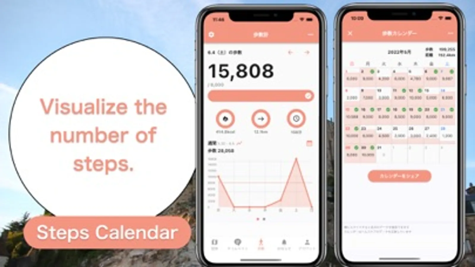 ■ A step count calendar is also included! Check your monthly step count!