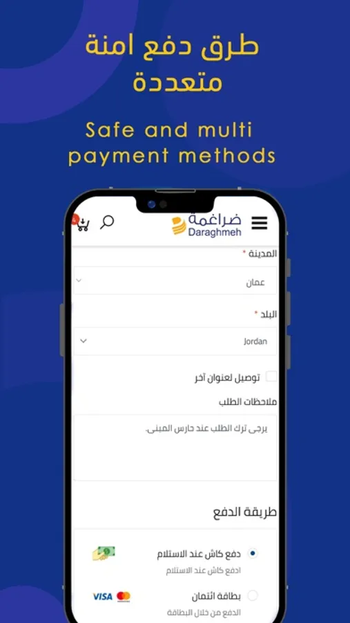 - Secure payment through credit cards and electronic payment (online payment). In addition to paying cash on delivery option.
