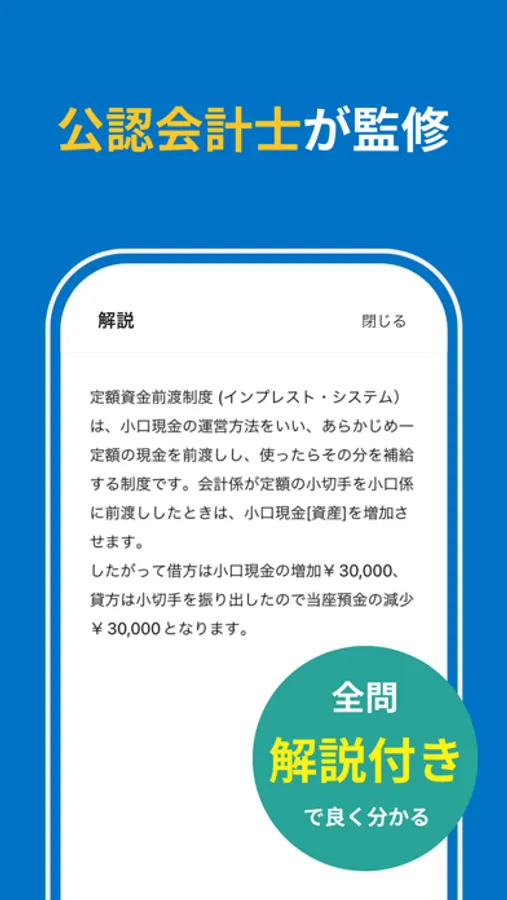 スキマ時間で簿記を勉強できる「速仕訳トレーニング」アプリです。