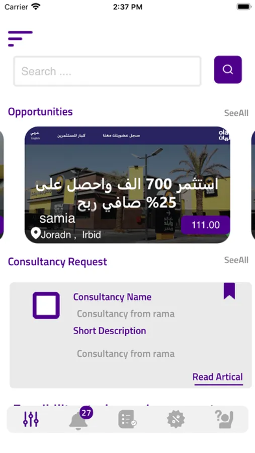 Olayan Investment Platform is platform to share all Opportunities and have some services like consultancy request service and Feasibility Study Service.