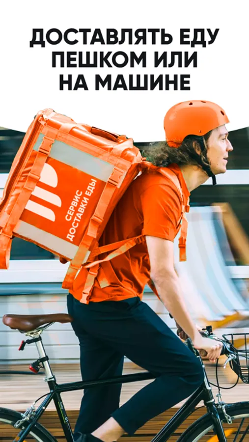Зарегистрируйтесь, чтобы начать доставлять еду. Для начала вам понадобится только ваш смартфон и транспорт (велосипед, автомобиль, скутер или пешком).