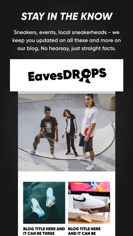 Stay in the know on the top new in the sneaker-verse with Eavesdrops. We take you on a trip down memory lane with Classic Rewind of the OG sneakers or have the spotlight on the sneakerheads in the region that rep their fav pair in the Local Heads section.