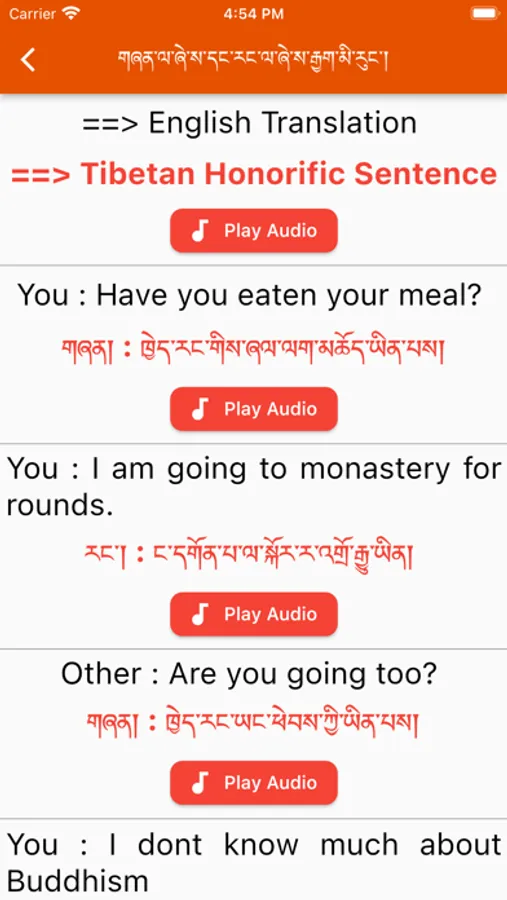 This app also contains audio in case one wishes to learn pronunciation also. And it also has English translation which will be helpful for non-tibetans to learn honorific in case they wish to learn. Over-all, if you like this app, then kindly share your experience in the store.