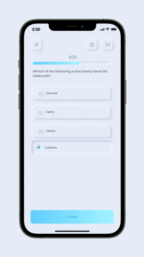 • Engage in our 30-second challenge game mode, where you compete with other students and healthcare providers in the medical field to train your spontaneous response to medication questions.