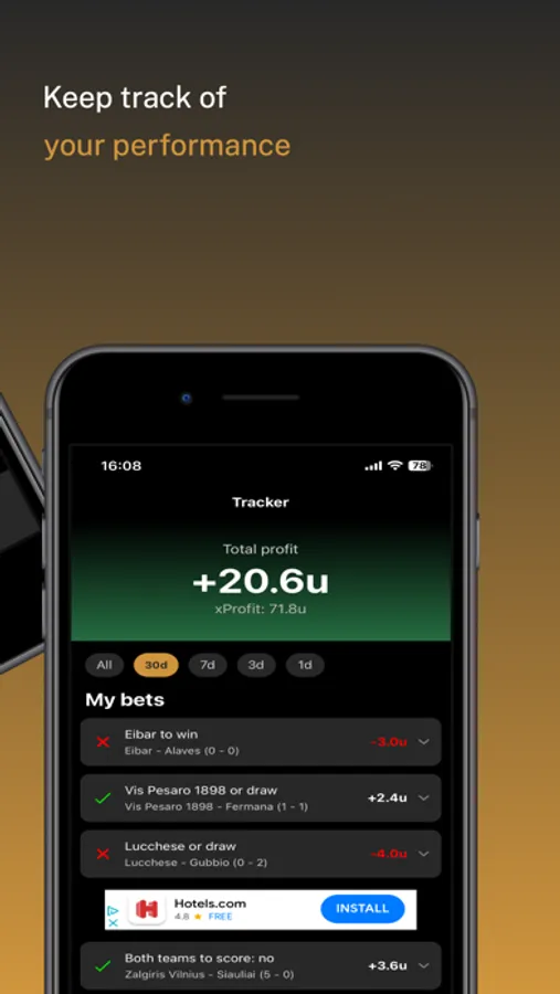 - Personal performance tracker: Keep track of your profits and analyze your betting performance over time.