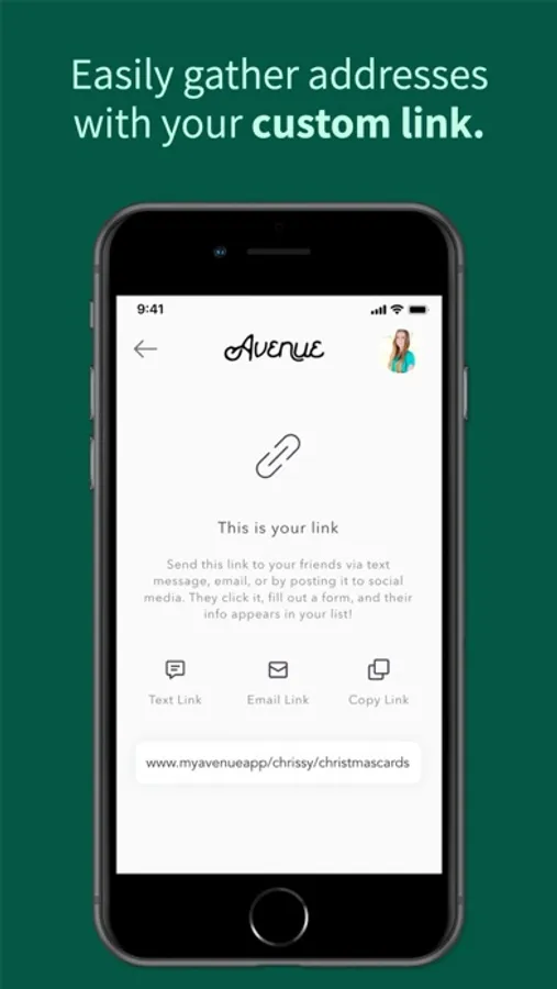 The list maker function allows you to gather addresses from your friends and family to create an address list to use as an invitation list or mailing list. Create your Christmas card list, wedding invitation list or party invitation list quickly and easily with this address gathering feature. You can add other Avenue connections to your invite list, or you can request addresses with your custom link from those not using the app, and their addresses will show up in your list automatically.