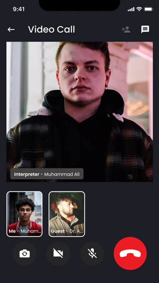 Deaftawk solution has four major components - the subscriber mobile app for the people with hearing disabilities, the interpreter mobile app for the certified sign language translators, a web portal for the guests and a web portal serving reporting dashboards. A subscriber can initiate a video call with an interpreter right away or schedule a call for a later time. While subscriber and interpreter are talking, the subscriber can invite a guest as well such as a doctor, tutor or a family member. When the guest joins a call, it now becomes a group call.