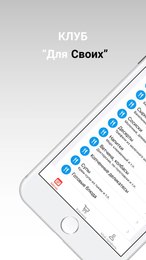 "Для своих" - это клуб , созданный на принципах Здорового домашнего питания, с целью обеспечить участников полезными и вкусными продуктами ежедневного потребления. В производстве используются только проверенные продукты и технологии. С нашими полуфабрикатами. Вы сразу почувствуете, как стало легче и быстрее готовить. Вы сможет больше уделять времени Своим родным и близким.