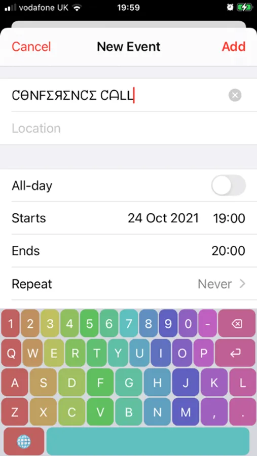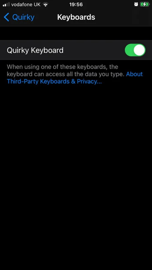 Quirky is an uppercase English keyboard extension for the iPhone with an accompanying App that lets you assign a non-standard symbol for each key. Use it to provide emphasis or just add a little quirkiness to your text and messages.