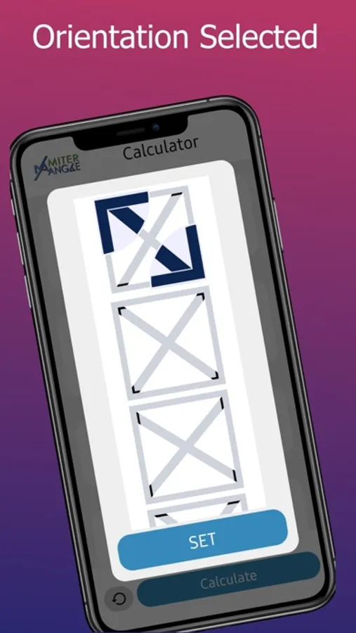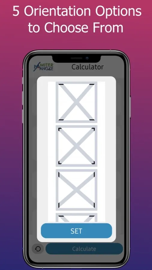 A visual representative image of the cross braces displays upon calculation showing exact miter angles and position of angles. Miter Angle takes the guesswork out of miter cuts allowing you to achieve that perfect fit with cross or x end braces.