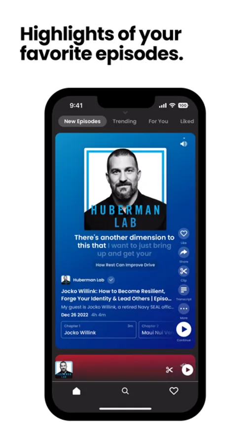 • Listen to podcast highlights showcasing what’s most interesting in an episode, for you.