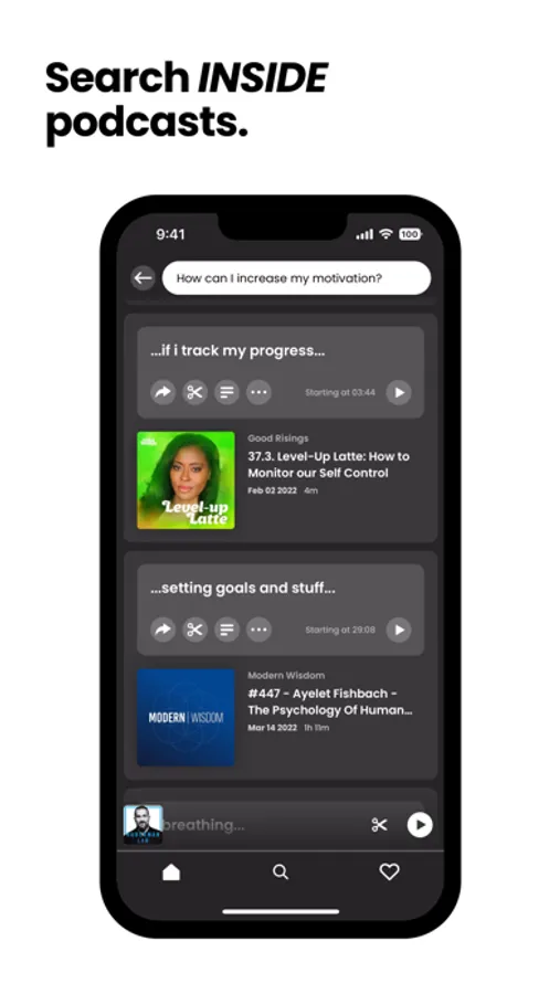 • Search within podcasts by asking questions and getting answers directly from thousands of episodes.