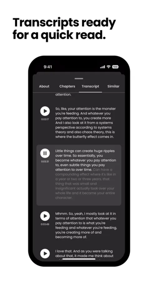 Quickly get a sense of what's inside episodes and find the most fascinating and relevant topics for you.