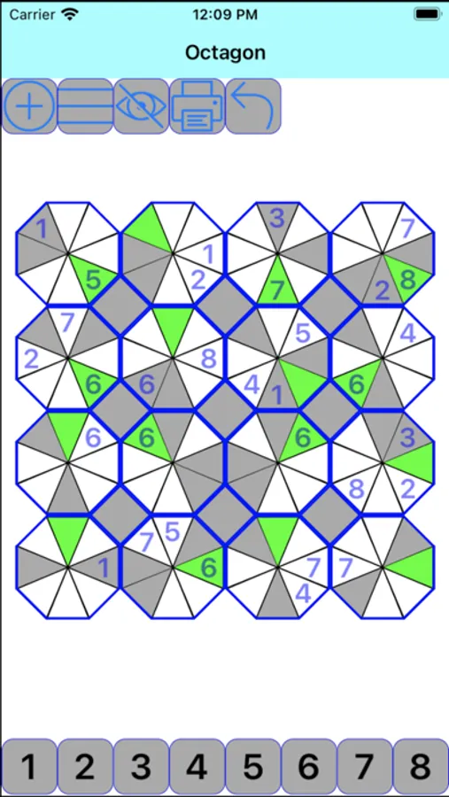 Fill in missing numbers from 1-8 in each of the 16 octagons