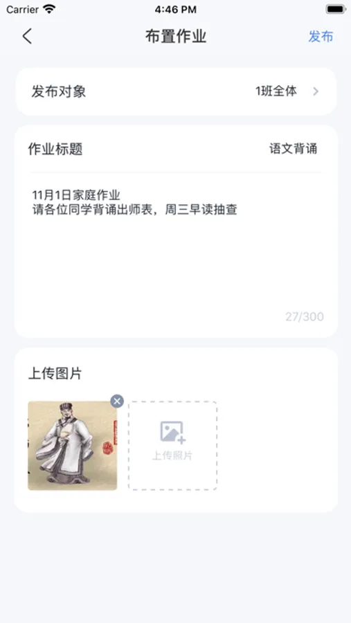 町盯守护是一款以学生为主体联结老师、家长的教育类互通软件,老师可以通过手机发布作业、通知等信息,提高沟通效率、信息到达率。