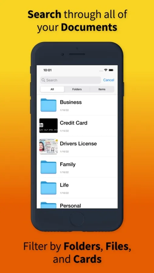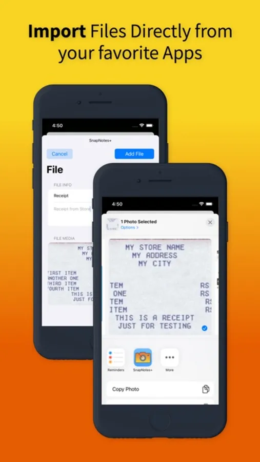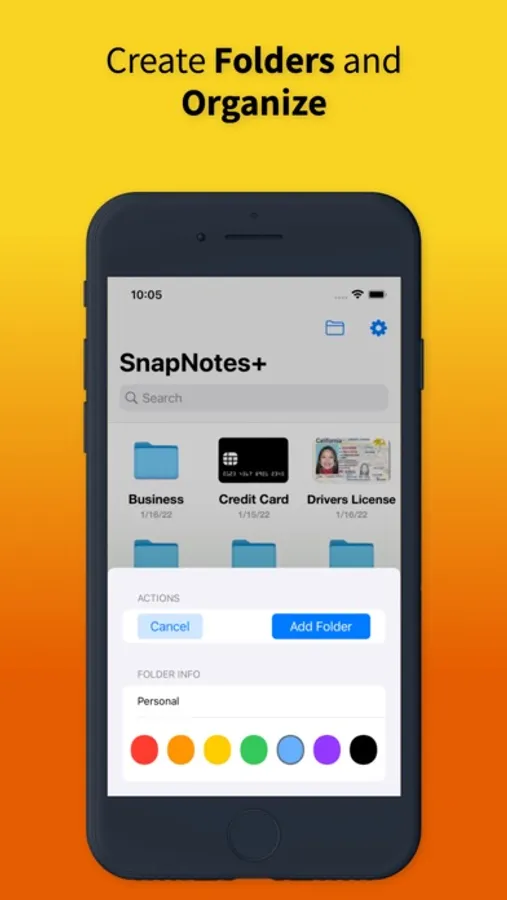 SnapNotes+ is the easiest way for storing documents, cards, files, images, videos and organizing them in folders.