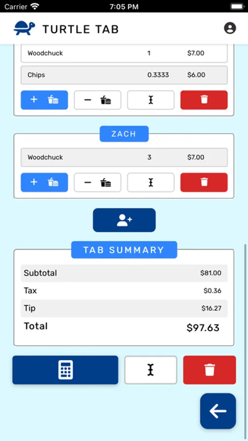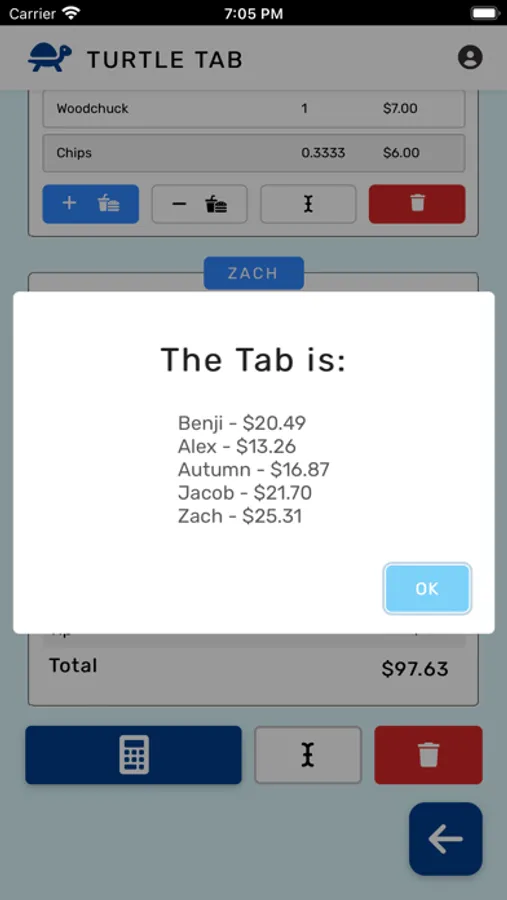 Turtle Tab was created to help you easily divide up bills among friends the most fair way possible. Nobody likes to be the one stuck with the bill at the end of the night, let alone figuring out what everyone else owes. With Turtle Tab, this problem is no more. You simply enter each person that was on your tab, what they got, along with the total, tax and tip and BOOM! You now know how much each person owes you.