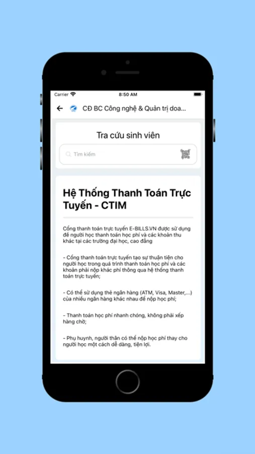 - Thanh toán học phí nhanh chóng, không phải xếp hàng chờ;