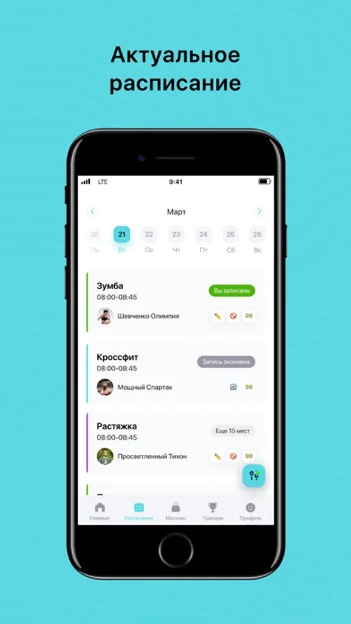 - Посмотреть актуальное расписание тренировок;