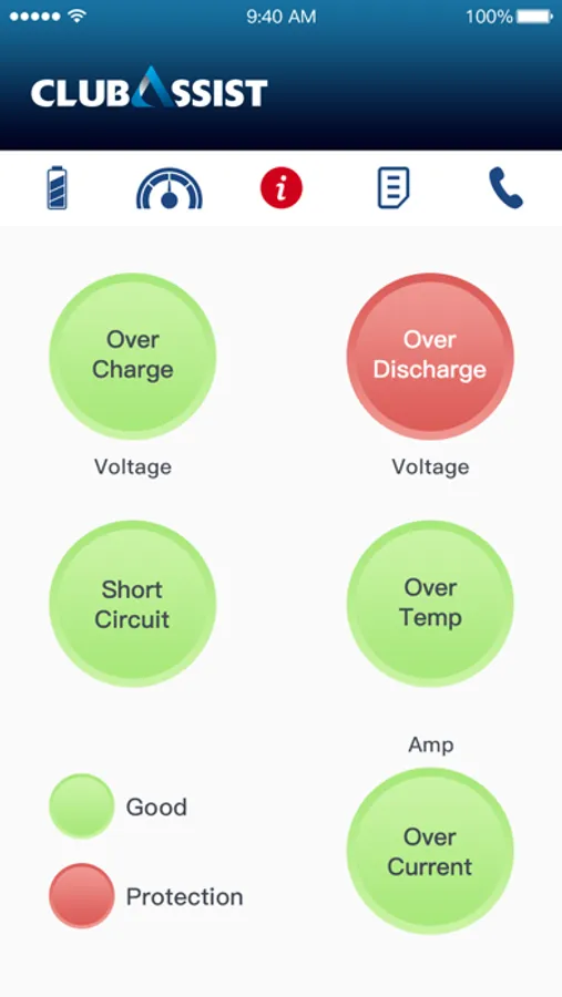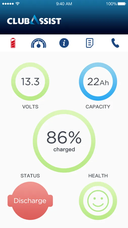 Wirelessly monitor your Club Assist lithium battery charge capacity and status from your mobile device