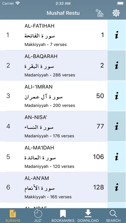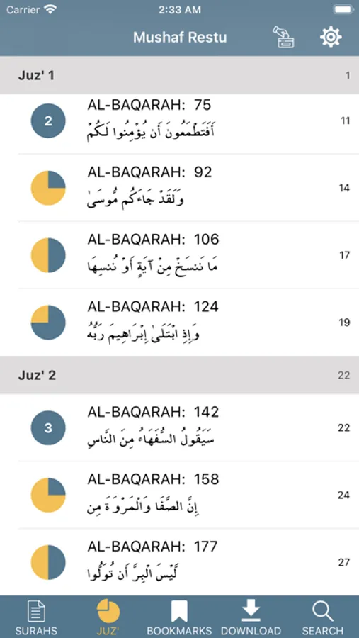 4) Fast and reliable search based on Juzu’, Verse, Surah, and Page.
