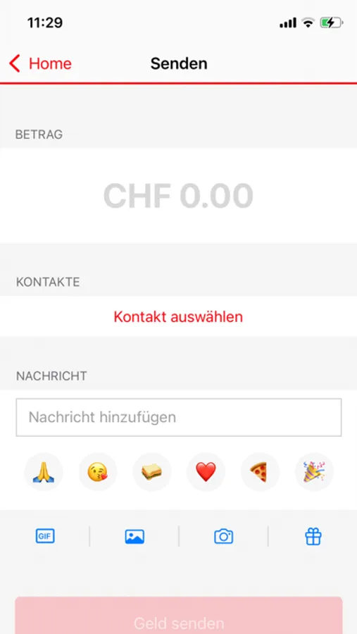 • Jederzeit Geld senden, empfangen und anfordern