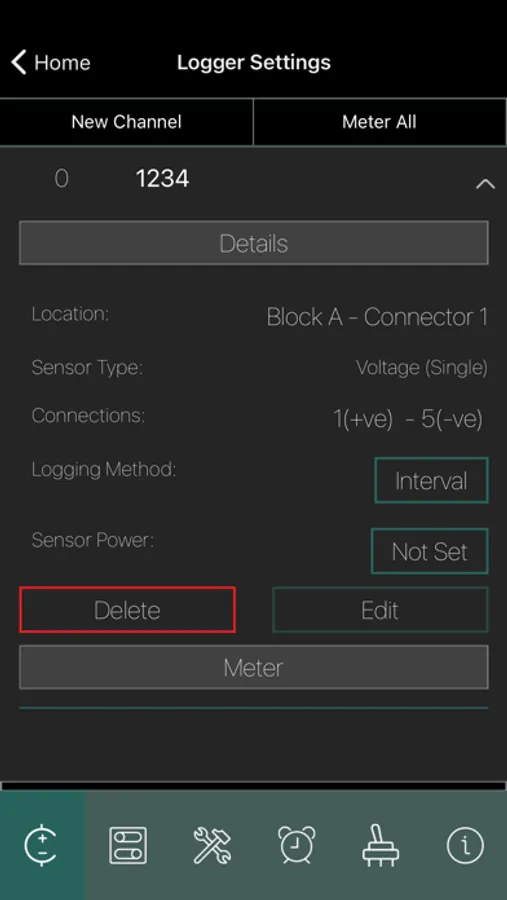 • Meter: view selected or all meter channel readings in real time