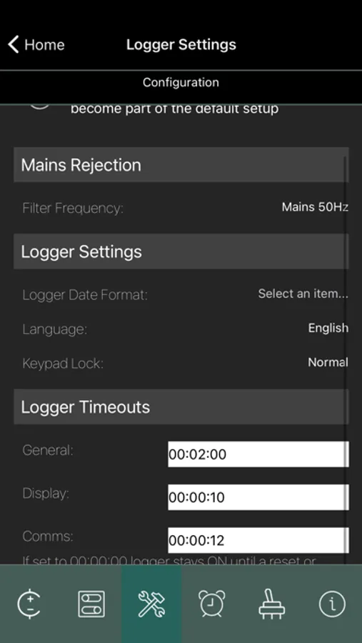 • Configuration (filter frequency, logger timeouts etc)