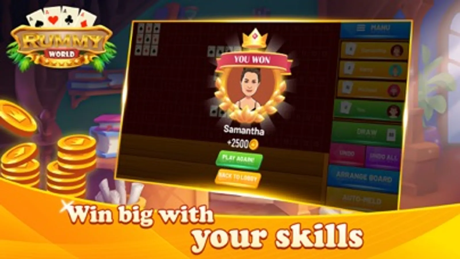 Rummy world Classic lets you play Rummy Tile games against artificial intelligence at different levels with different bets. You will earn coins by playing and winning against AI. You can earn millions of coins and play in high-bet rooms against artificial intelligence if you are a really good rummy player.